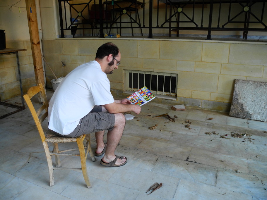 Actually, the water problems seem pretty serious at the moment, not because there is no water (lest our readers think the Greek crisis has already reached into the realm of basic public infrastructure and natural resources) but quite simply one of the pump engines is broken, together with several pipes. This is a “good” chance to explain a bit more about the SAIA/ΙΑΣΑ house in Agioi Deka. First of all, until 1998 or 1999 Italian archaeologists were hosted in another building, the old episkopeio in the center of the village, and at some point in a school. The former director of SAIA Antonino Di Vita made a big invesment when he decided to build an entirely new headquarter, a few hundred meters above the village, with large room for both people and … archaeological finds. The SAIA house is made of two buildings, one of which is mainly devoted to storage of finds and a conservation laboratory. The two buildings are separate, so when water supply is broken on one side, we can queue outside bathrooms on the other side. How convenient. In fact, the accomodation in Agioi Deka is incredibly good compared to most other excavations I’ve been (tents, school classrooms, you name it), but it’s disappointing to see a new building that is already rotting away due to lack of maintenance and, perhaps, a mismatch between a grandiose project and a rather clumsy execution. There are many reasons for this, among them we could certainly count the continuous cuts to the SAIA – I can’t even recall how many petitions to “save” it I signed – and the future looks rather grim from here. After all, how can Italy afford to maintain a handful of such houses around Greece, plus a big headquarter and library in Athens, at a time when new taxes pop out every other month, and old privileges for foreign archaeological schools are erased by inflexible changes in the Greek administration?